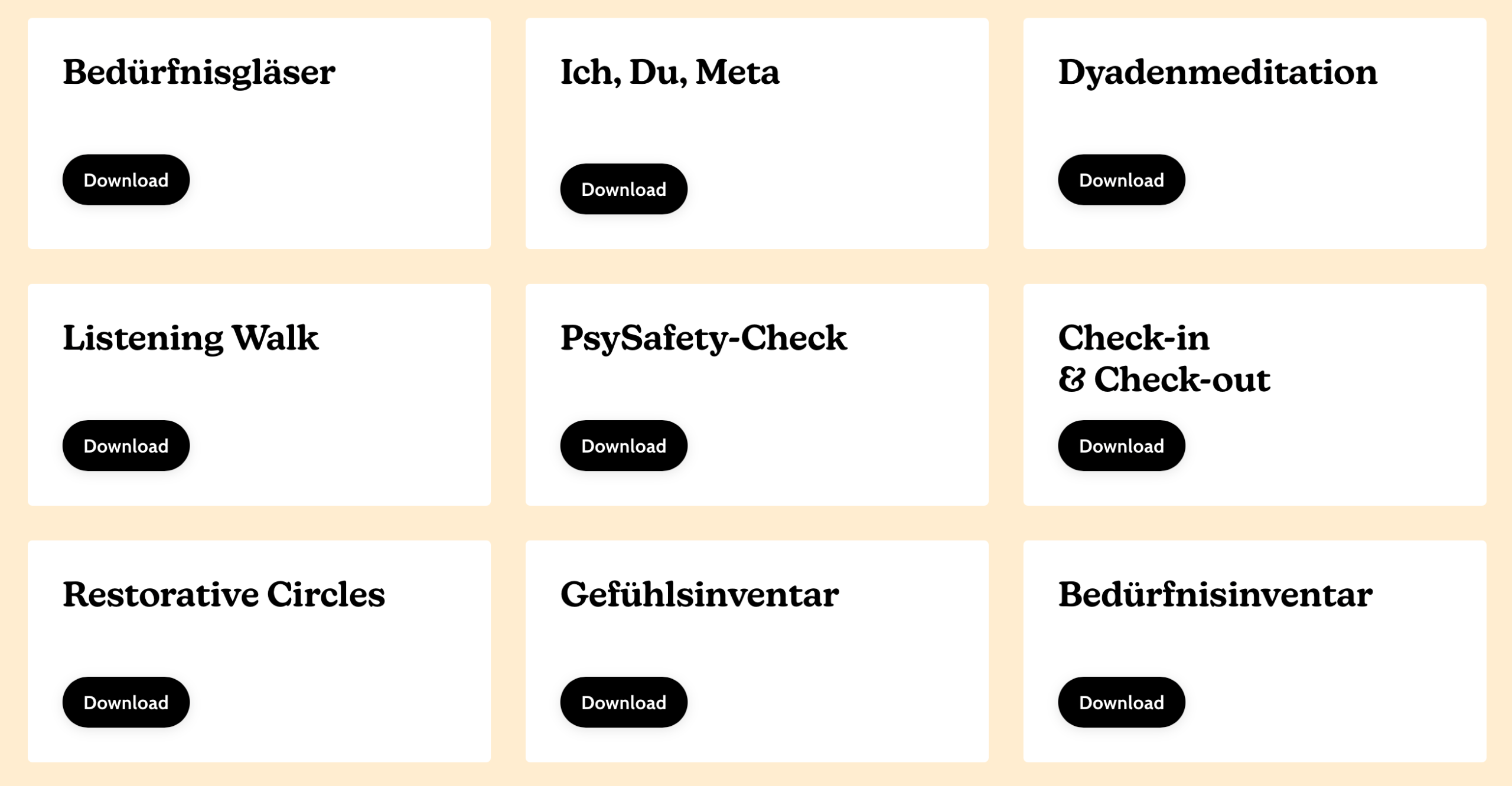 Du hast das Buch gelesen und möchtest das Gerlernte direkt in die Praxis umsetzen? Wir haben dir eine Auswahl an Handouts zum kostenlosen Download zusammengestellt.